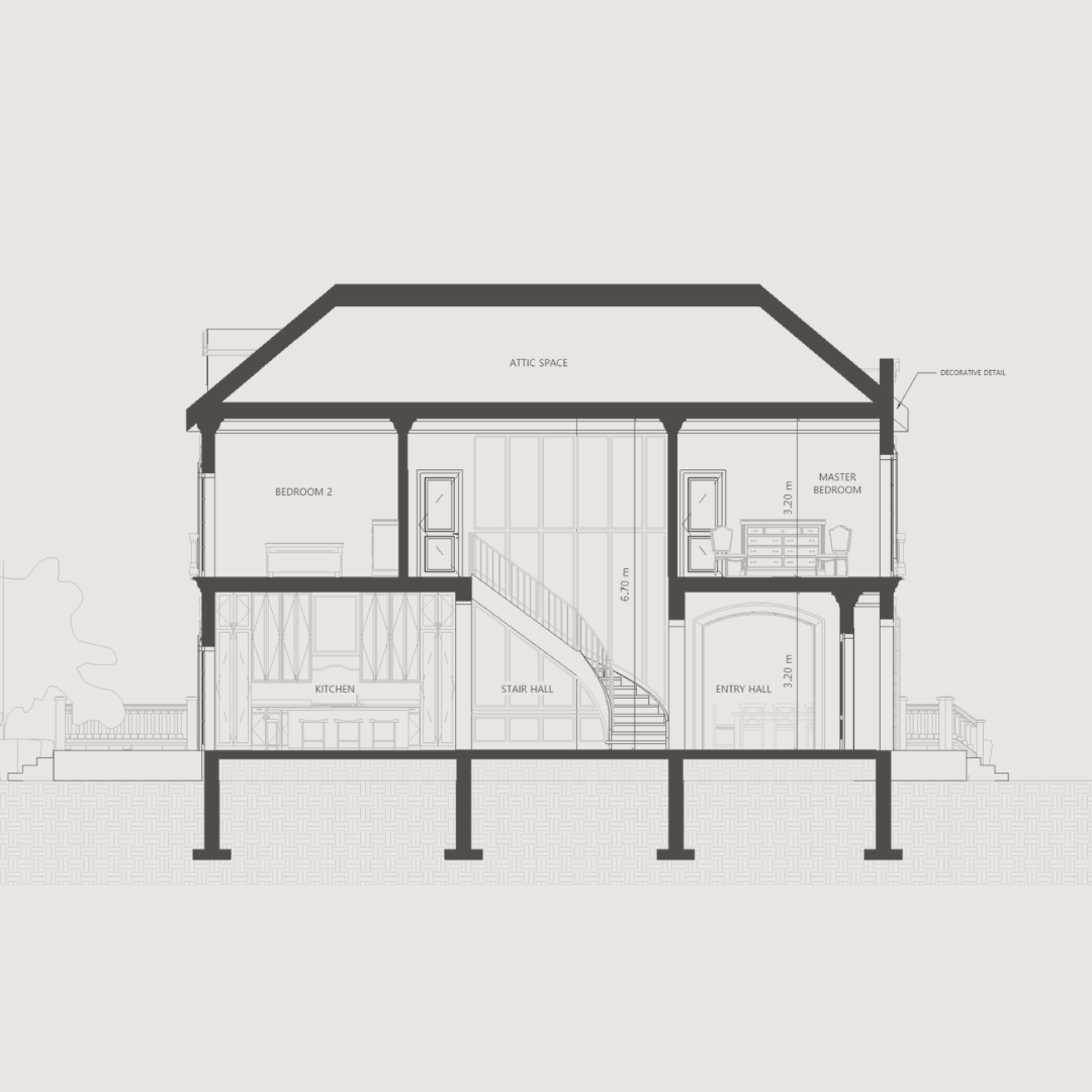 After carefully listening to their needs, we successfully designed a 300-square-meter home that marries classic design with modern functionality. The house features a symmetrical façade, French doors on both levels, and offers plenty of natural light and flow between indoor and outdoor spaces. Inside, four bedrooms, two offices, and two and a half bathrooms provide generous, well-thought-out space for family life. This home’s balance of tradition and comfort will serve as a beautiful backdrop for their family’s future memories.